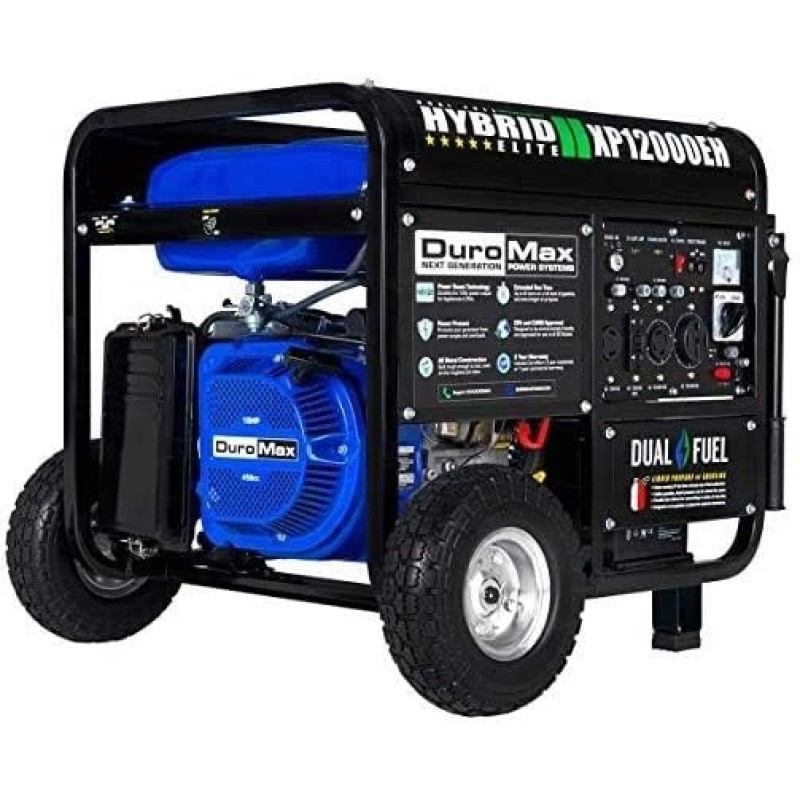 The DuroMax Hybrid Dual Fuel XP12000EH 12,000 Watt Generator offers the maximum versatility and will have you prepared for any power outages. 12,000 watts of power will provide you with the comfort to weather any storm! This dual-fuel, Gas or Propane fuel source Generator can run up to 8 hours on Propane which will give you the longest run time and minimize maintenance from gasoline emissions. Nicknamed the BEAST, this unit provides power normally found in home standby units but in a portable package! It will help you to power essential appliances and even comfort technologies during unexpected outages to keep your family comfortable and to live life uninterrupted. Available as either Gasoline or Gasoline/Propane powered, the 12,000 Watt BEAST Generators offer the most versatility and savings all in one package!